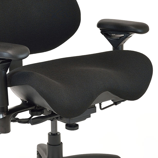 Those leg troughs were designed into the chair to cradle the legs – and in that process, increases the surface area of contact with the legs. The greater amount of contact area you have with the legs and buttocks, the greater area bearing the weight of the body against the chair thus effectively lowering seated pressure on that part of the body. Lower seated pressure typically translates to greater comfort.